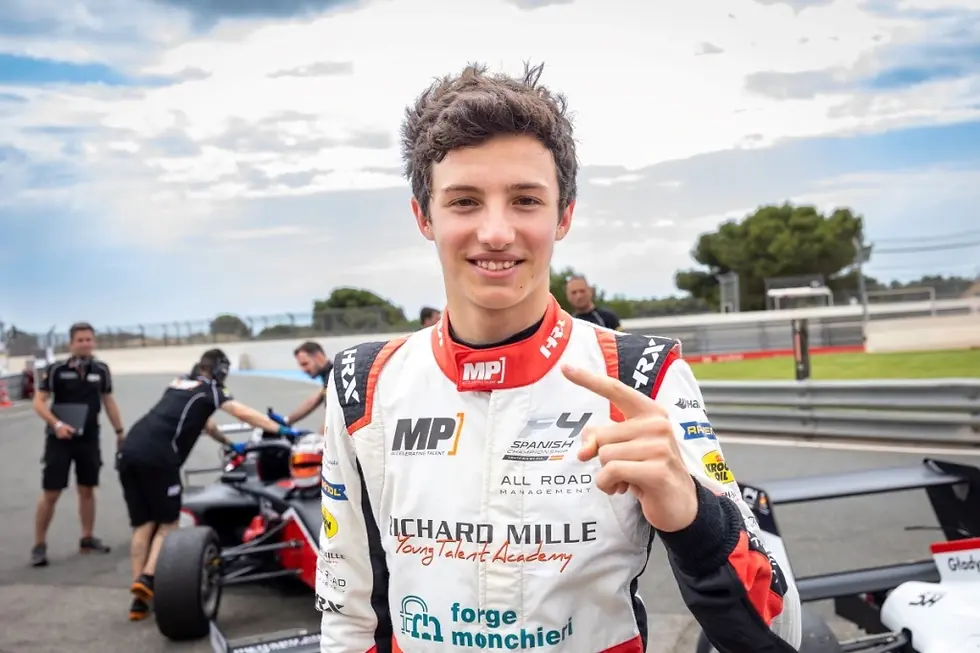 M (Mattia): I'm Mattia Colnaghi, an italian driver born in Monza. I was born in 2008 and I started karting when I was 11 years old. At the moment, I race for the spanish F4 with MP Motorsport.